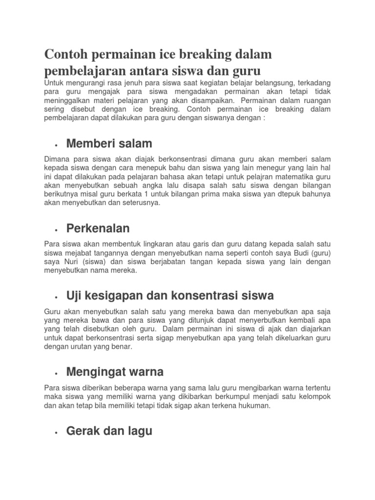 Contoh Permainan Ice Breaking Dalam Pembelajaran Antara Siswa Dan Guru Pdf